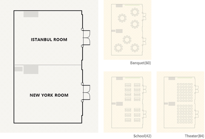 安静而舒适的New York & Istanbul大厅是举办60人规模的家庭聚会、商务会议和小型研讨会的最佳空间。